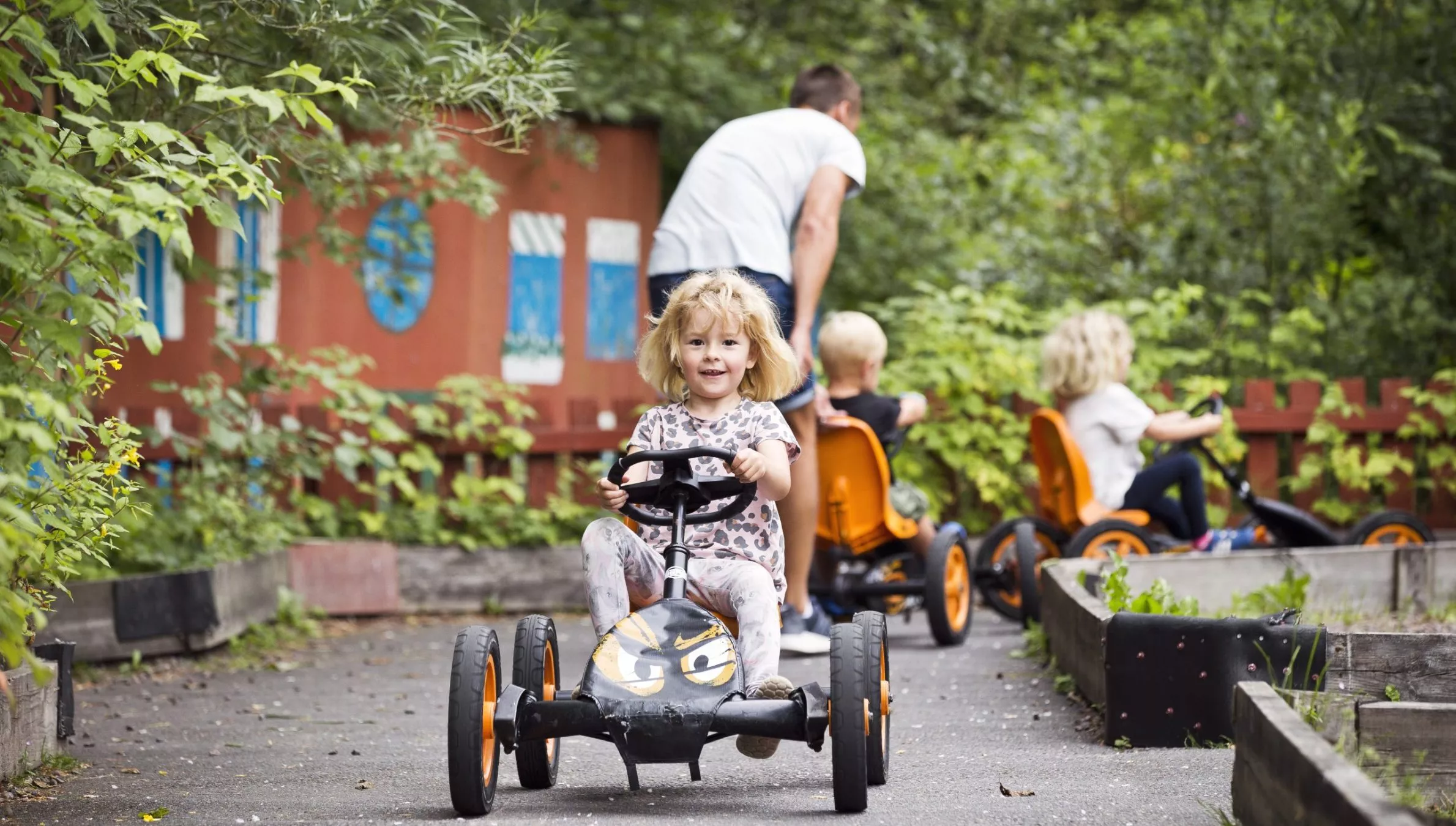 Här kan du ta en tur på piratflotten, köra trampbil, hoppa studskudde, klättra i klätterställningar plus en massa andra roliga upptåg.